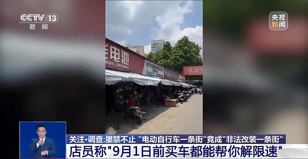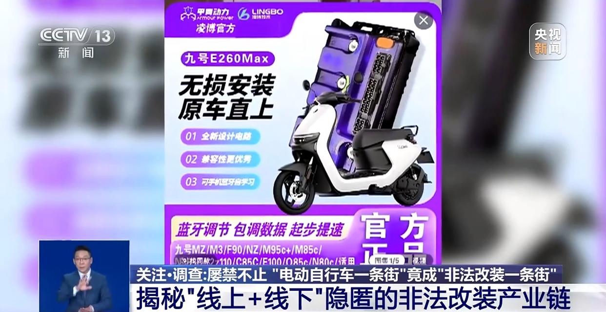 电动自行车以其经济、便捷等特点,已成为人们日常短途出行的重要交通工具。工业和信息化部等五部门组织修订的强制性国家标准《电动自行车安全技术规范》,已于2024年12月31日正式发布,将于今年9月1日起实施。新国标完善了电池组、控制器、限速器的防篡改要求,有望从源头控制非法改装。然而新规实施在即,电动自行车的非法改装却并未销声匿迹。在有些地方,不仅存在多个非法的电动自行车改装门店,还形成了改装“一条街”甚至改装“产业园”,商家还宣称“电动自行车的车牌,电动摩托车的速度”,也就是可将规定的电动自行车最高时速25公里改到80公里,续航里程提升至200公里。同时,还有商家在短视频平台直接打广告销售电动自行车改装方案和设备。这究竟是一条怎样的产业链?新国标实施后,存量电动车的改装问题该如何解决?来看总台中国之声记者的报道。