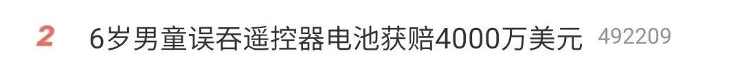 根据公告,时间回溯至2022年7月。美国一名6岁男童在家中误吞空调遥控器内的纽扣电池,造成胃肠道永久性损伤。其家属随后对遥控器生产企业——一家中国出口商提起诉讼,索赔金额高达1.252亿美元。