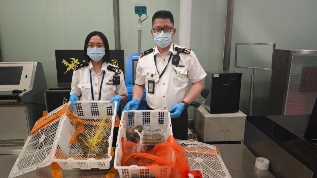 近日,广州海关在广州白云机场口岸旅检渠道查获一名旅客违规携带濒危活体动物出境,现场查获濒危物种乌龟30只、鳄鱼2只。