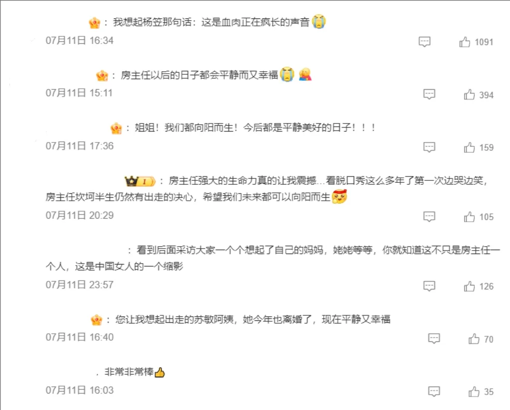 不少网友称:“房主任强大的生命力真的让我震撼”“看脱口秀这么多年了第一次边哭边笑”。