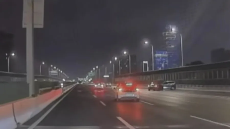 网友的行车记录仪画面显示,当时,一辆SUV沿中环内圈一号车道行驶,行驶过程中,不时有骑压车道分隔线的行为。