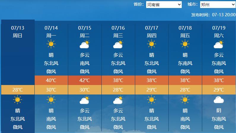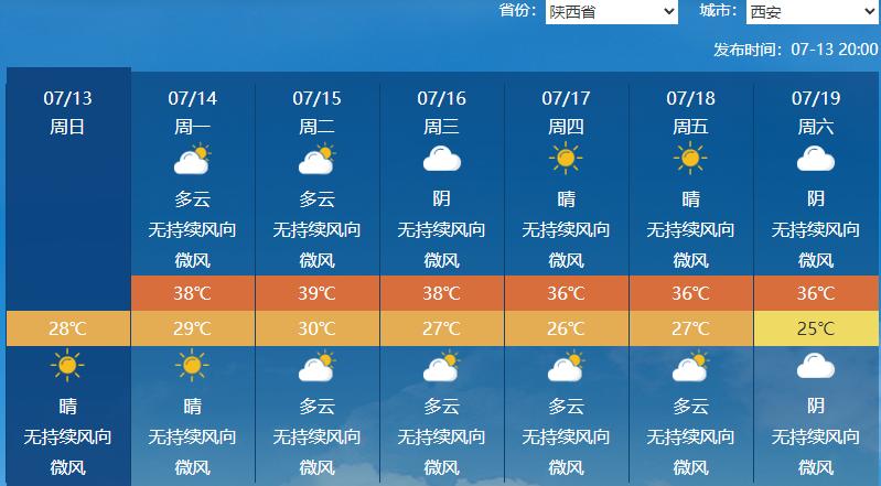 城市中,西安、郑州这个周末已经连续两天高温,下周高温还将贯穿一整周,而且明后天,郑州最高气温将达到40°C或以上,“炎”值拉满。