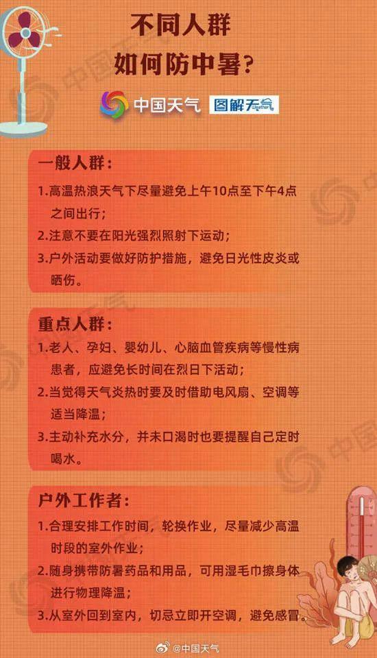 接下来的“高温周”大家一定不能掉以轻心,长时间户外活动易发生中暑或热射病,需继续做好防暑降温措施。