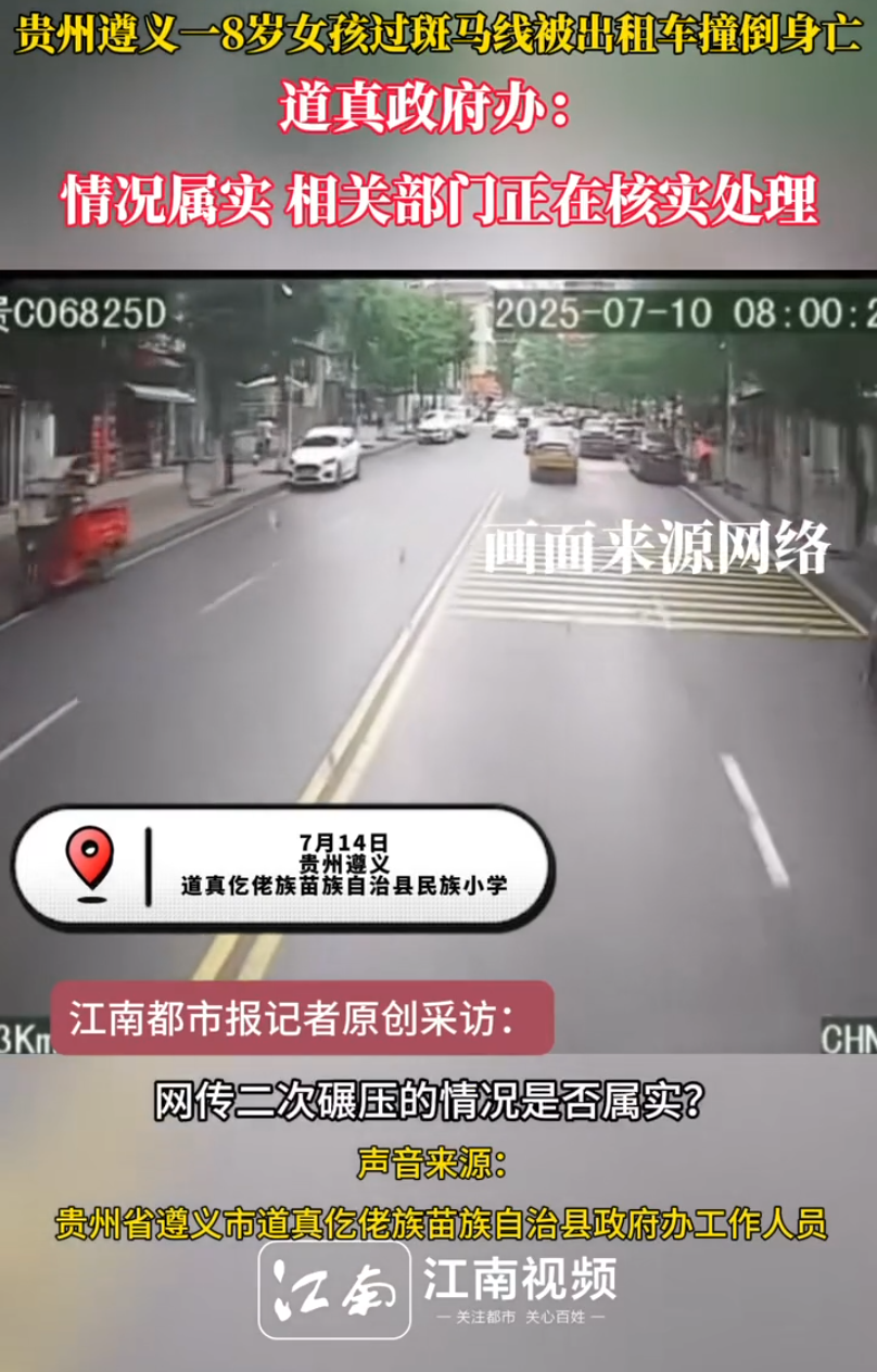 7月14日,江南都市报全媒体记者就此情况向贵州省遵义市道真仡佬族苗族自治县政府办核实,该政府办工作人员回应称:“情况属实。”网传二次碾压的情况,该工作人员表示“这个需要相关部门核实,这个事情正在处理中。肇事车司机一直都在现场,没有逃离。现在情况我不清楚,就是相关部门正在核实处理。”