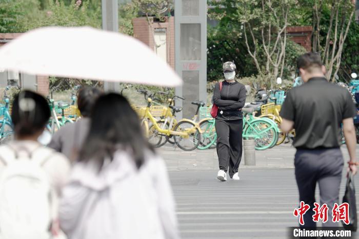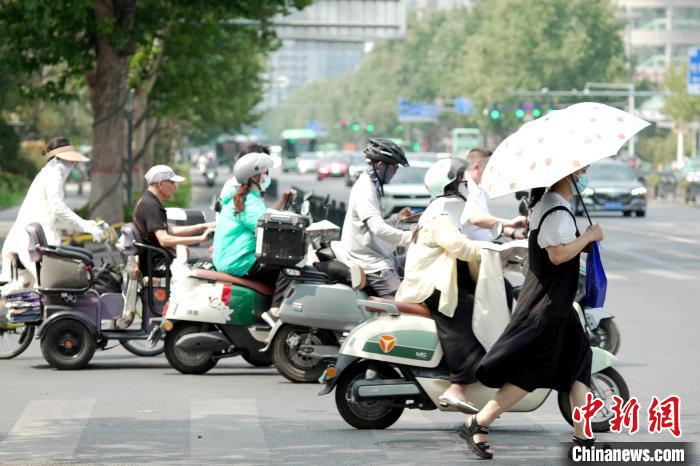 7月14日,河南郑州市民高温出行。 中新社记者李超庆摄