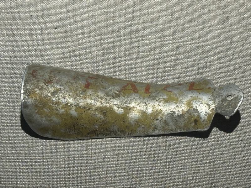 盟军轰炸机残片做成的“鞋拔子”。新京报记者曹晶瑞摄