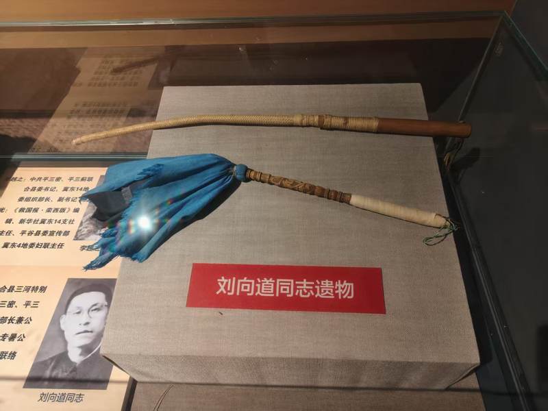 除了鞋拔子,在红谷主题教育馆中,还有一件充满故事的文物——马鞭。“想让更多人铭记抗战历史,刘向道的外孙女将马鞭捐赠给了红谷主题教育馆。”符宝森口中的刘向道1908年出生于平谷县峪口村的一个贫苦农家。年少时,他读过私塾,当过学徒,曾投身国民军,南下寻找过红军,还参加了穷人会。在动荡不安的年代里,刘向道暗中阅读进步书籍,立志要改变这黑暗的世道。