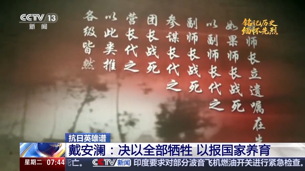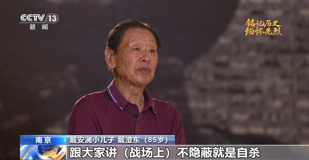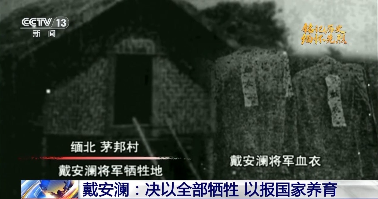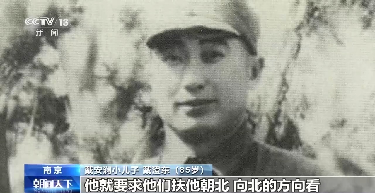 戴安澜小儿子 戴澄东:(时任第200师第598团团长)郑庭笈将军就跟他讲,你还有什么话要跟夫人讲的?父亲知道自己要去世了,他就要求他们扶他朝北,向北的方向看,因为北方就是祖国,他要看一下自己的祖国,然后就牺牲了。