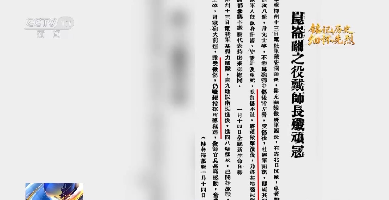 中国第二历史档案馆副研究馆员 刘传吉:他在前线督战,身先士卒,负伤之后又不下火线,受伤之后还坚持8个小时,表现出了强大的作战意志。经过20多天的战斗,第200师成功攻克主要的据点和高地。