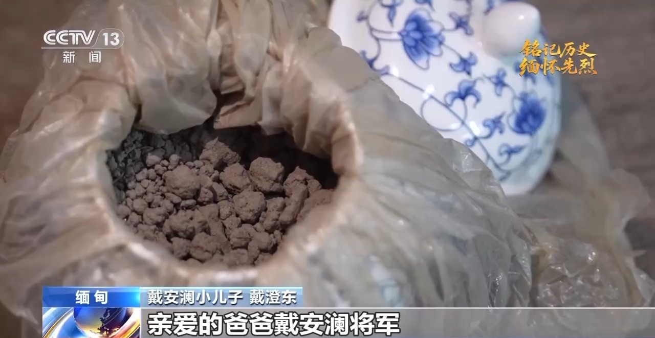 戴安澜小儿子 戴澄东:亲爱的爸爸戴安澜将军,远征军的将士们,我们来凭吊你们了,你们跟我们回去吧,回到自己祖国大地,和家人团聚,和亲人团聚。