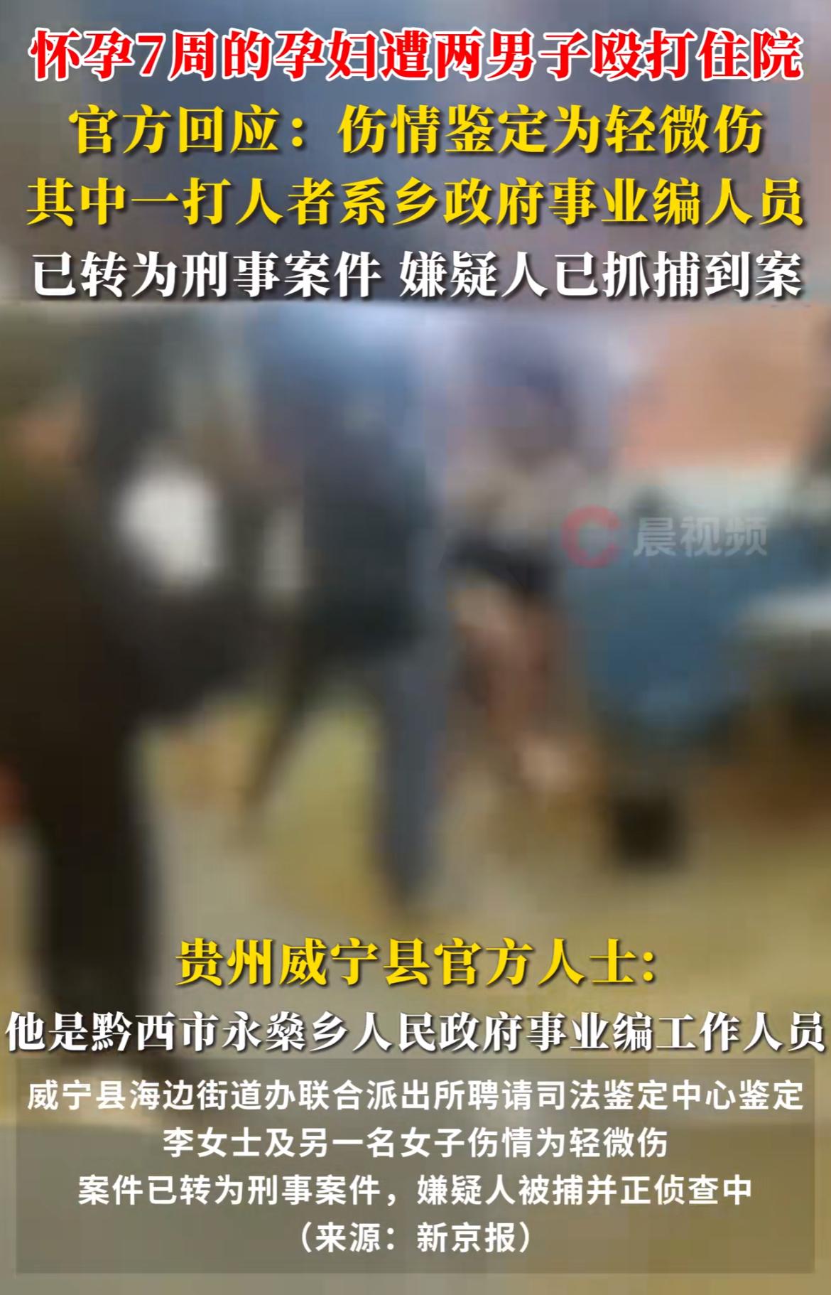 7月14日,据新京报,官方披露两名男子参与殴打,一人系黔西市永燊乡政府事业编工作人员。目前,案件已转为刑事案件,嫌疑人被捕正在侦查中。据此前报道,律师分析,涉案事业编工作人员除承担刑事责任处罚外,还将面临纪律处分,且极可能导致事业编制终结。