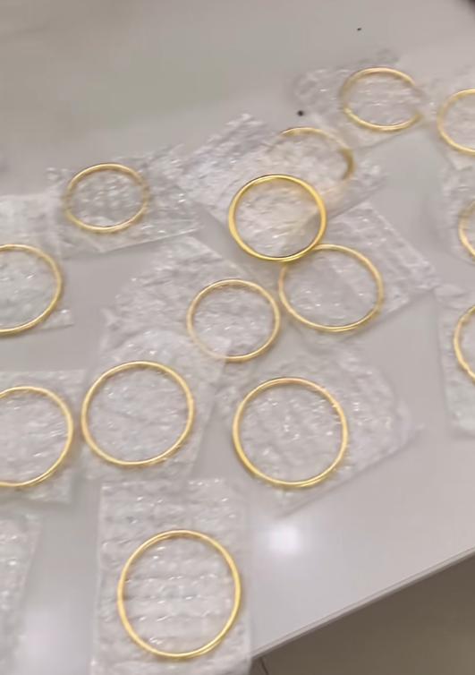 就在此前,龚女士在航二路某珠宝店门外垃圾堆中意外发现了这个快递盒,打开一看竟是一堆黄金手镯。她毫不犹豫,第一时间将这份“意外之财”护送到了派出所。
