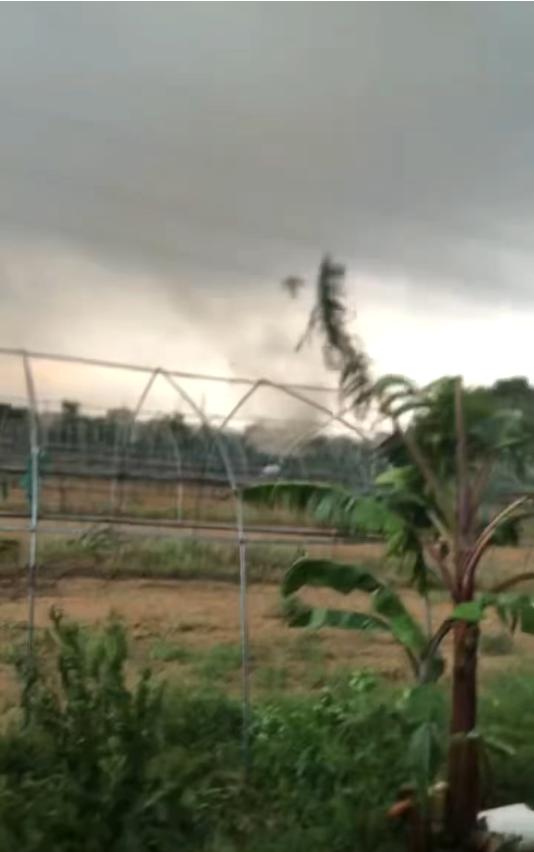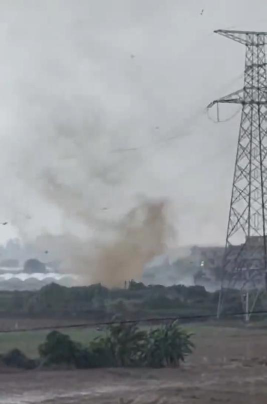 现场视频显示,龙卷风风力强劲,将地面的尘土和落叶卷起,附近就有高压线。也有视频显示,几处塑料大棚被吹得只剩下空架子,有目击者称:“这下完了,太恐怖了!”