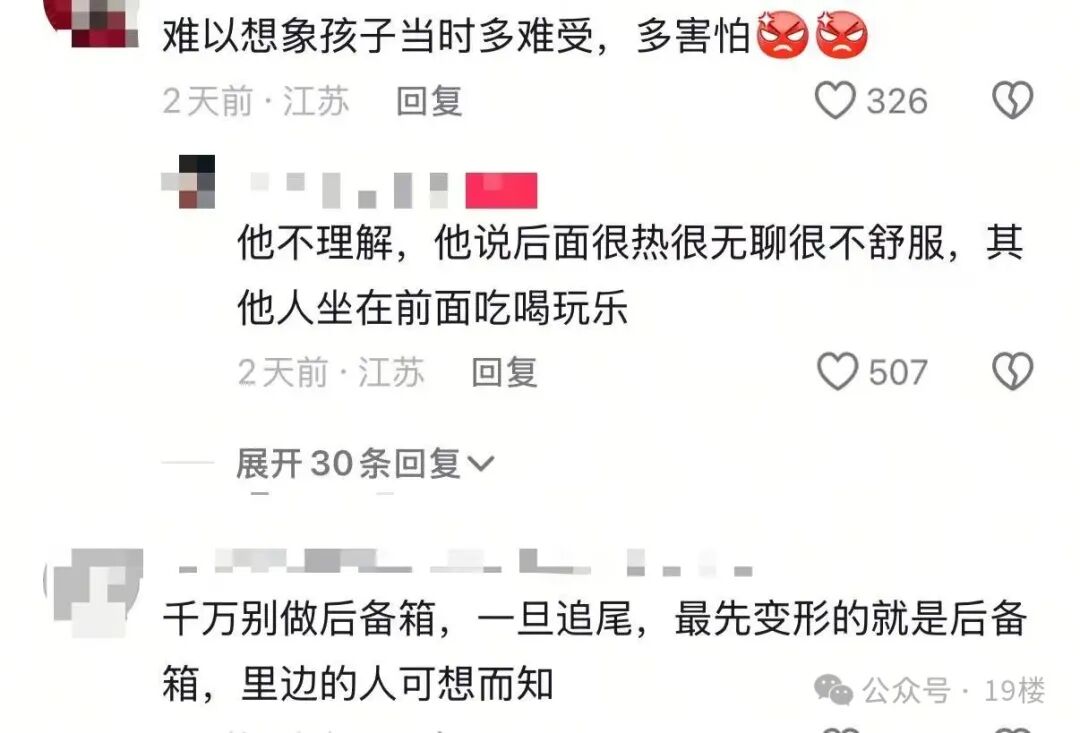 话题#男孩与亲爸后妈远行坐后备箱数小时#