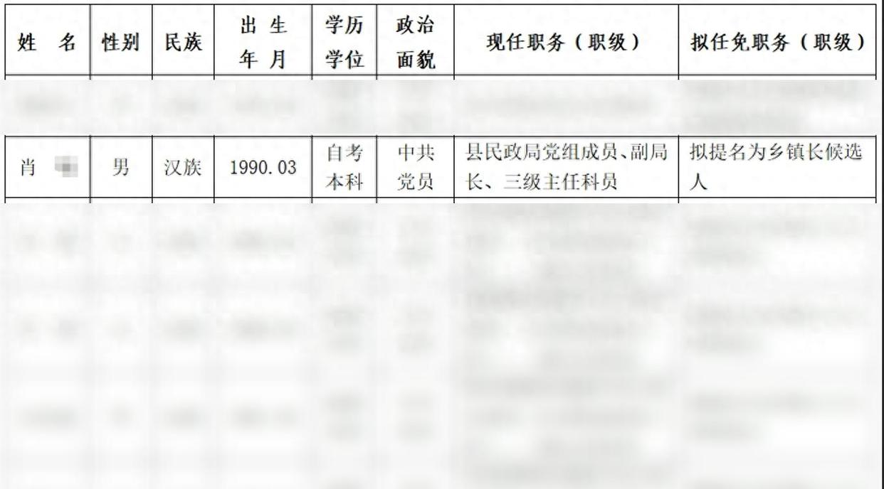 有网友对拟提名为乡镇长候选人的县民政局副局长肖某的简历提出疑问。