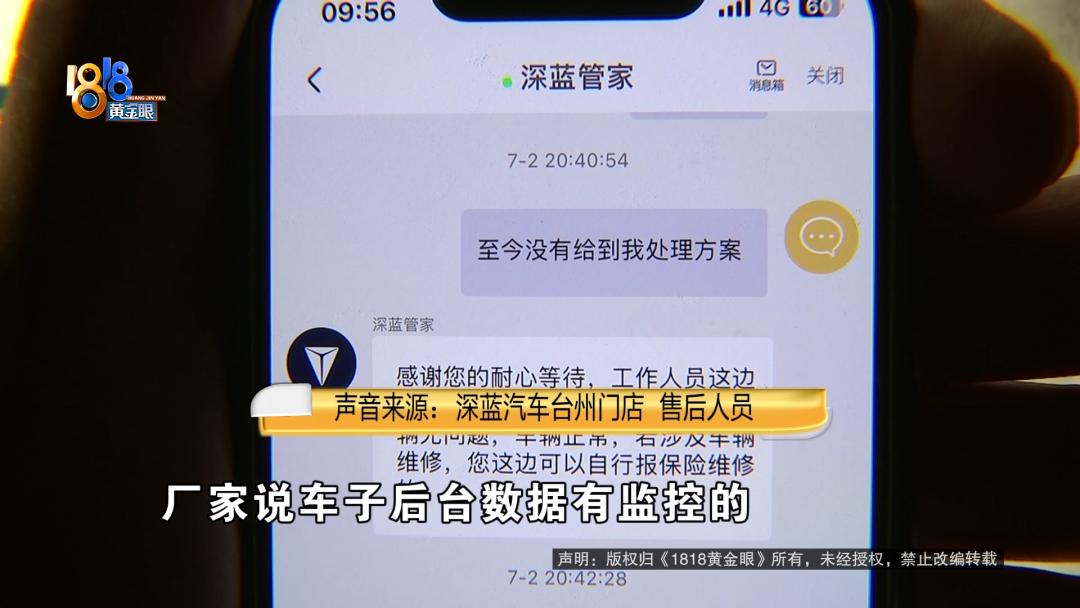 深蓝汽车台州门店 售后人员:厂家说车子后台数据有监控的,是他自己在什么临撞前,什么踩了刹车方向一打,车子没有问题。