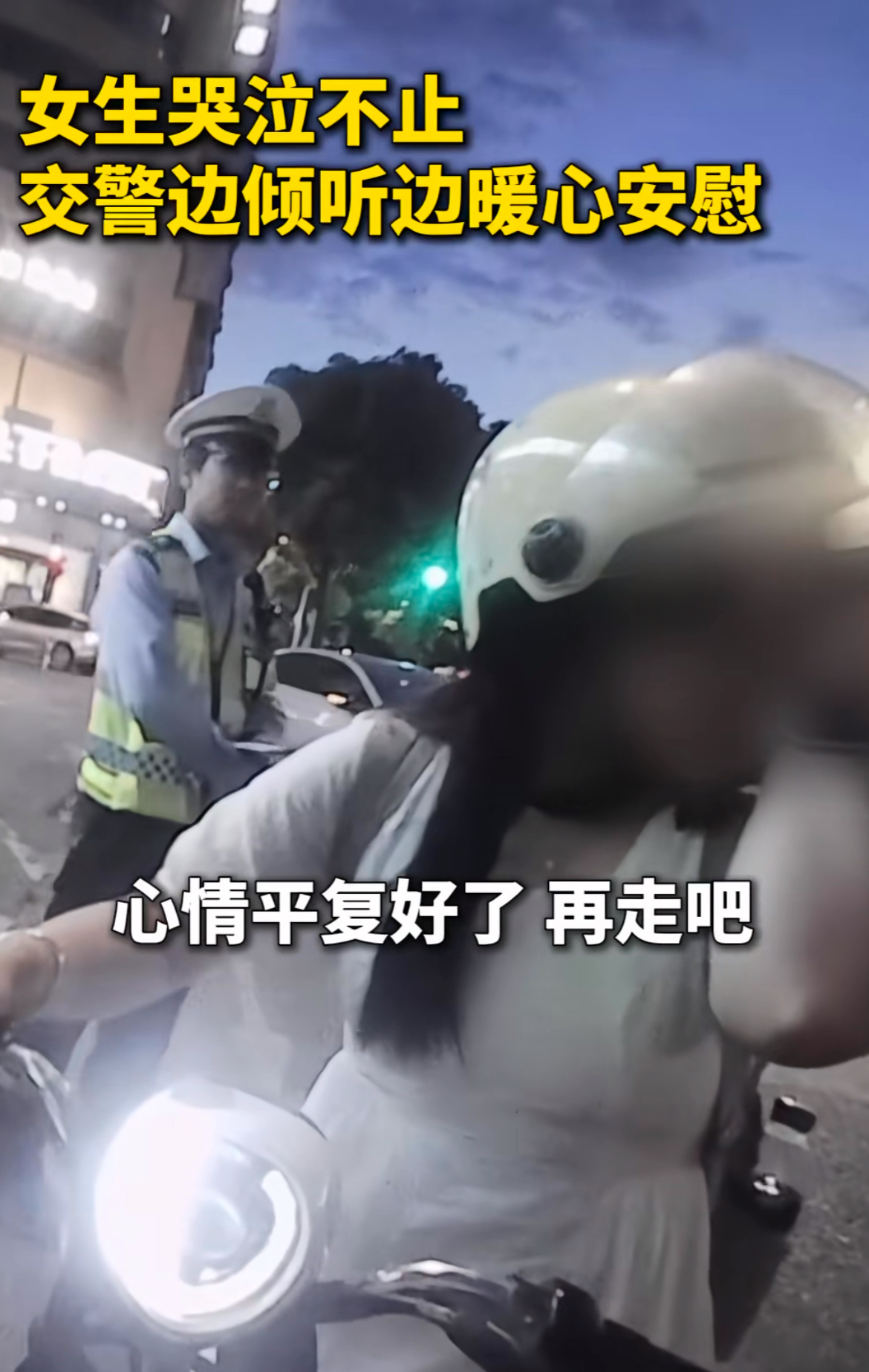 近日,江西南昌,执勤交警安慰情绪低落的骑车女子被网友点赞。