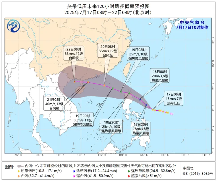据中央气象台消息,菲律宾以东洋面的热带低压正在活跃,预计将于今天加强为第6号台风,18日下午至傍晚擦过或登陆菲律宾吕宋岛东北部,19日上午移入南海东北部海面,逐渐向广东西部到海南岛东部一带沿海靠近,强度继续加强,最强可达台风级或强台风级。