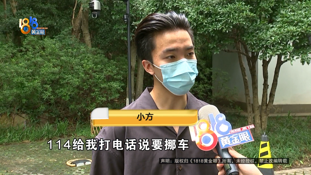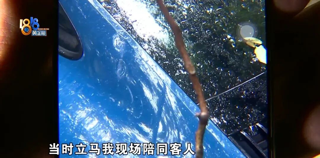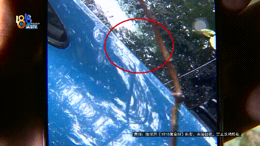 小方:7月11号的中午,114给我打电话说要挪车。我吃完饭以后下来,就发现树枝已经砸到这个车的车身上面了,目前推断的话 应该是那个白色的树直接砸下来了。