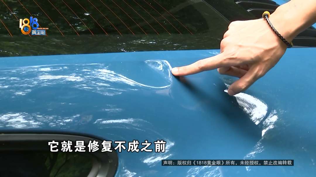 小方:车的钣金是两层的,它就是修复不成之前这个车的样子了。那我这个车本来是原版原漆的,现在出这个事情了,那就是会有一部分的车损。我不算那个膜,我这个膜是进口膜,然后膜里面还有一层透明的进口膜。车的维修4S店报价是1万左右,事故不还原直接卖掉,那其实这个折损的话可能就是1万块钱多到2万块钱左右。但是如果说我修复完,这里腻子粉打上以后我再去卖,那这个车损就会比较大,能查出来,这种伤属于是重大事故车了。