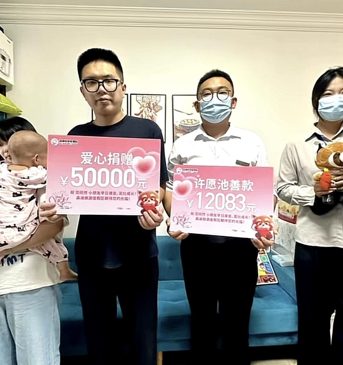 7月11日,江苏森迪文旅集团将善款5万元打到了孩子母亲的银行卡上。