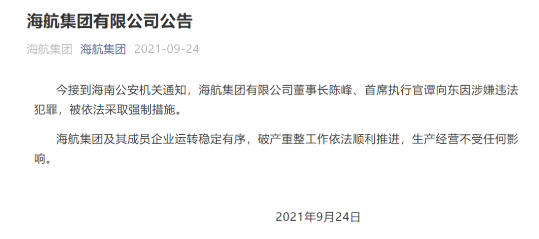 红星资本局7月18日消息,7月18日,海口市中级人民法院的工作人员告诉红星资本局,海航集团有限公司(下称海航集团)原董事长陈峰的案件由该院办理,案件已经判了,“昨天(指7月17日)判的。”
