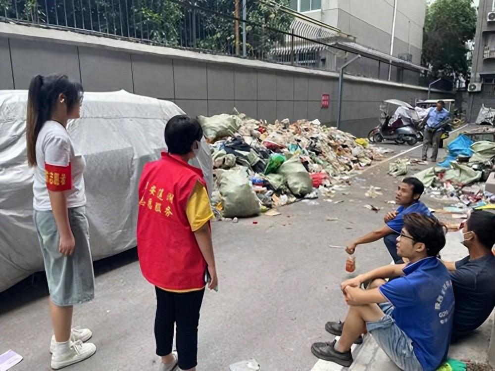 7月8日,社区工作人员、辖区派出所民警、物业和老人的儿子一起找到老人。由民警负责给老人做“思想工作”;社区和老人家属开门查看情况,联系第三方清理公司;物业提前在小区贴出通知,提醒居民尽量让出通道,方便清运车进出及垃圾摆放。