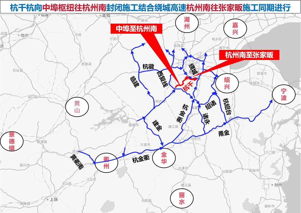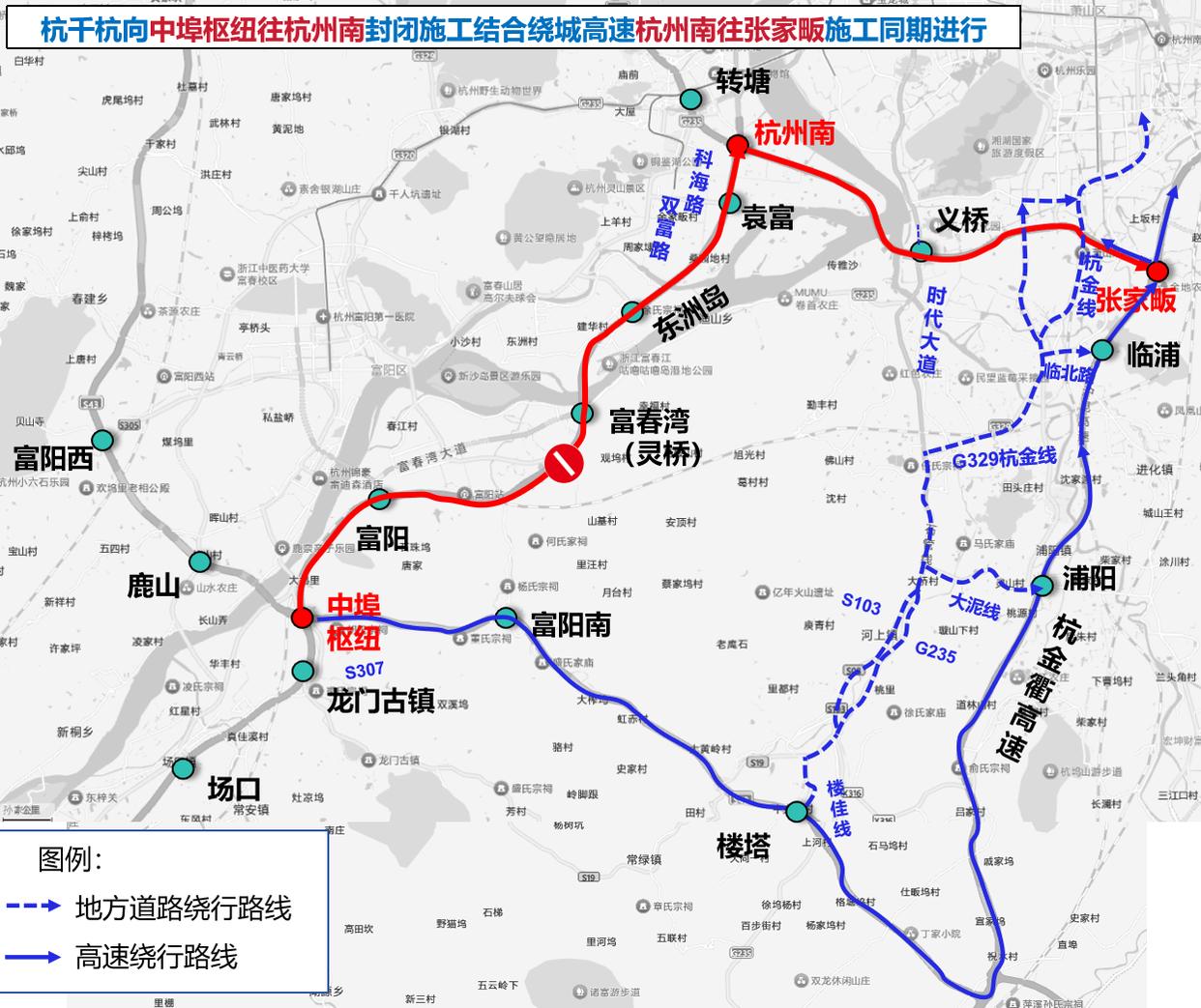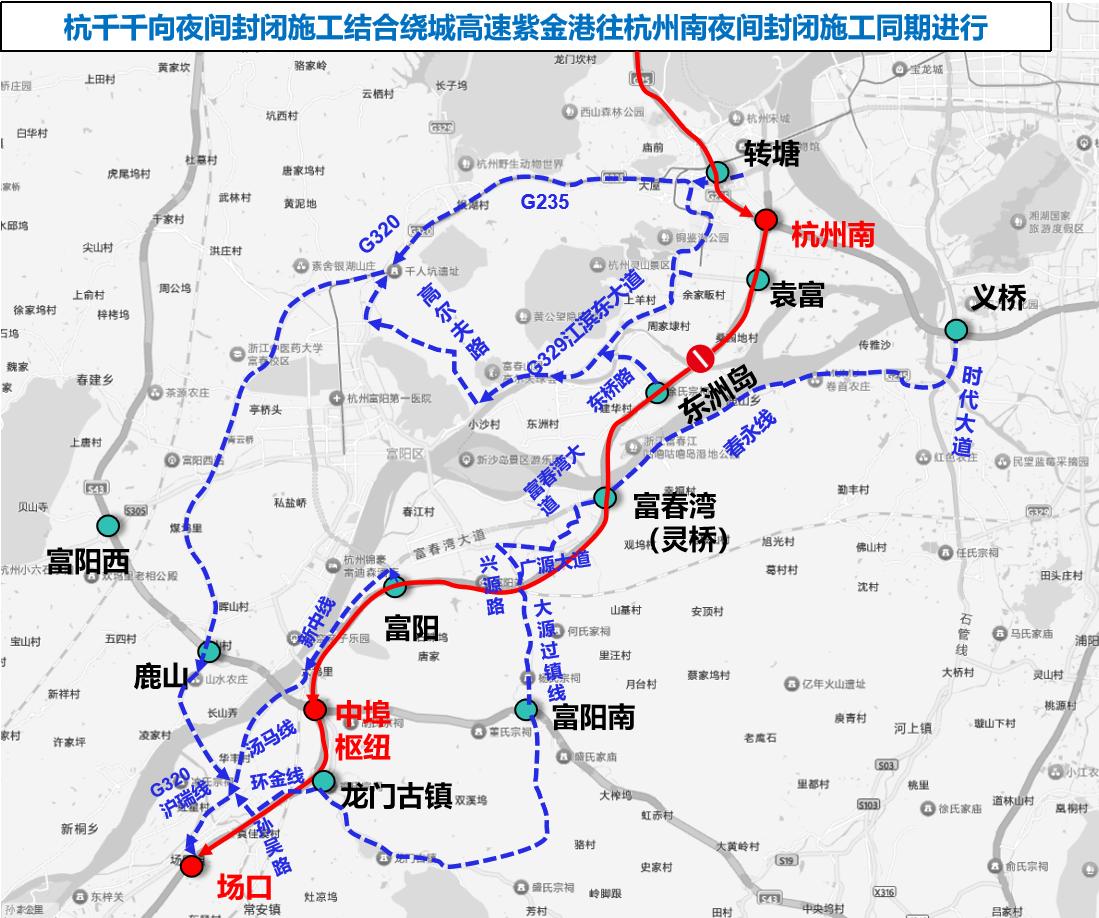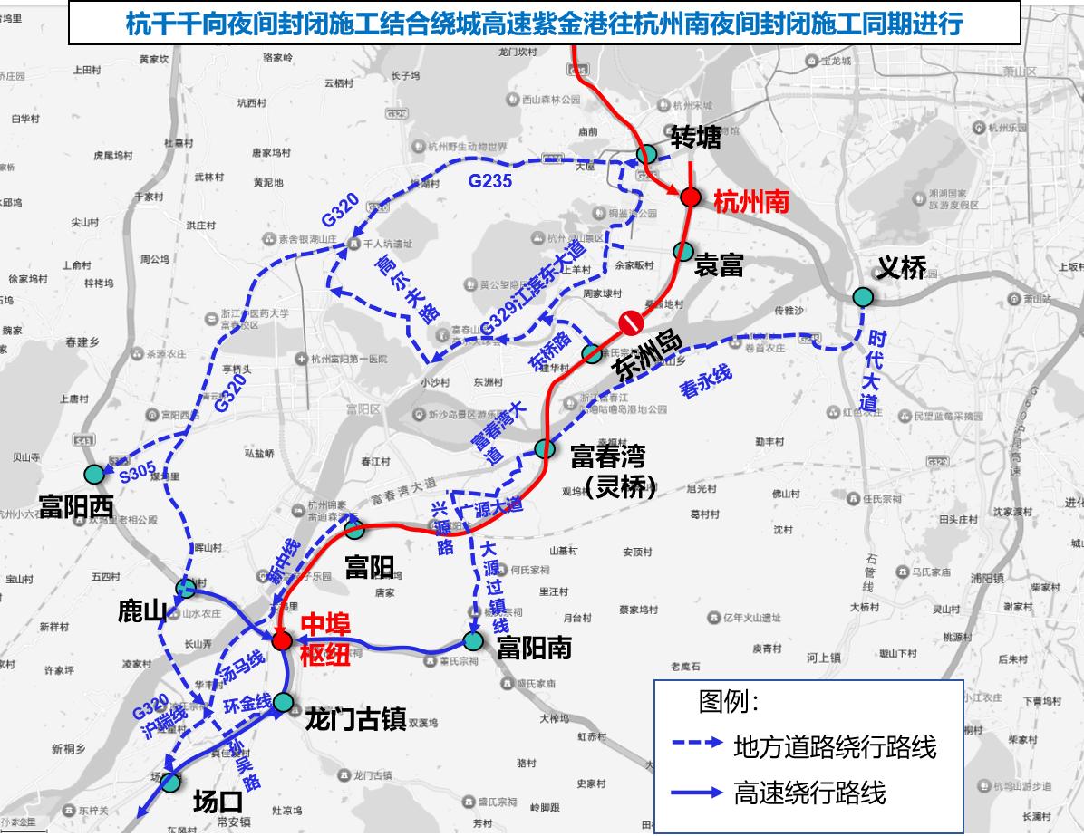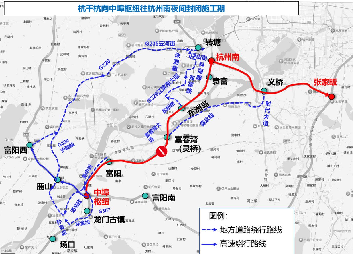 杭州南往中埠枢纽单向封闭施工期间