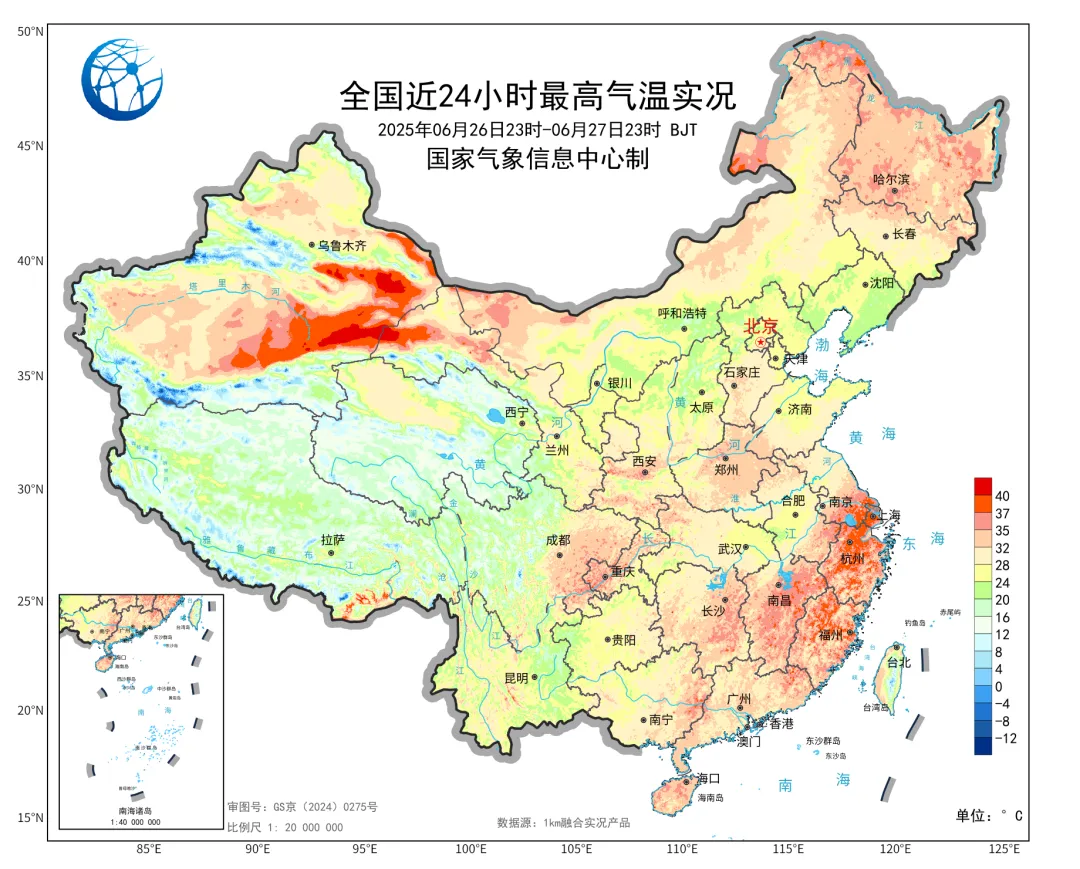 ◎全国近24小时最高气温实况图图源:中国气象局
