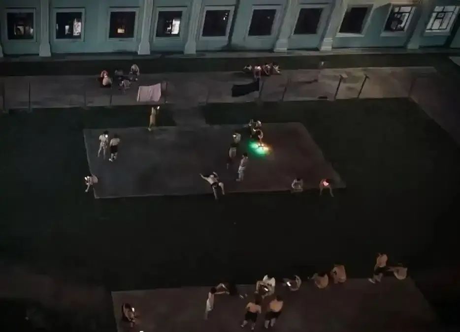◎男生在操场打地铺乘凉图源:社交媒体