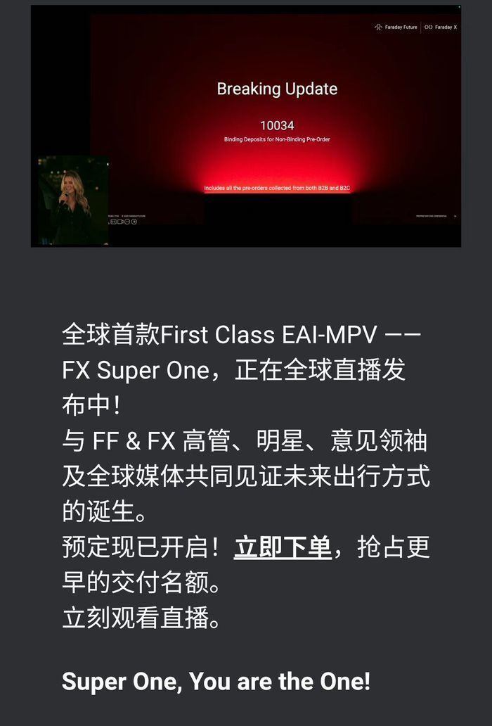 贾跃亭在直播开始20分钟后现身,1小时下定超1万台
