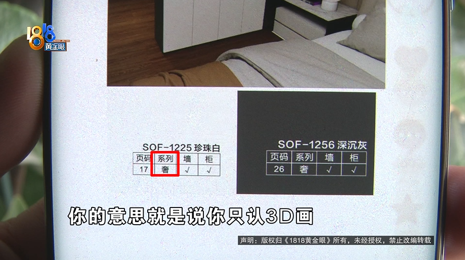 胡经理解释多出来的钱不光是柜子材料的升级,还包括家里的3D装饰画,两千来块钱,铝板面积也多用了两个多平方,将近四千块钱,关于所谓的优系列和奢系列。