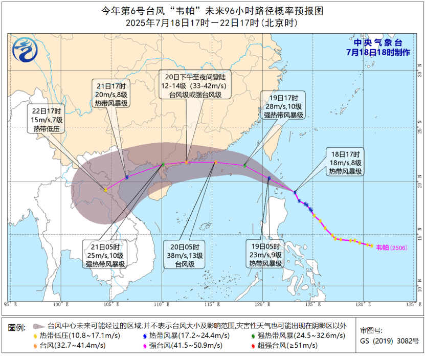 台风“韦帕”较大可能正面袭击广东,并带来强劲风雨影响,公众需做好台风防范准备,注意防御18日到19日台风临近前出现的强雷电、短时大风等强对流天气,海上渔船需及时回港避风,防范强降水及其引发的山洪、泥石流、山体滑坡、城乡积涝、中小河流域洪水等次生灾害。