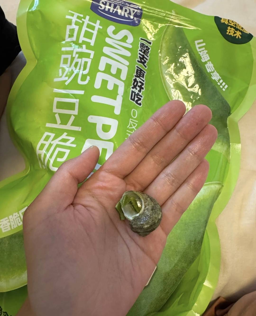 而在网友热议还未平息之时,近日,家住北京市的程女士向封面新闻记者反映,自家孩子在一包甜豌豆脆零食里吃出了海螺,而这包零食正出自山姆北京亦庄门店,目前她已将此事反馈至有关部门。