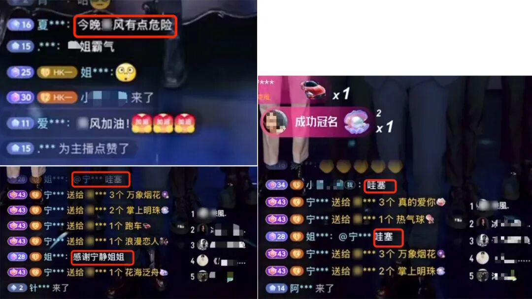 宁静每送出一个礼物,公屏里的氛围组开始评论