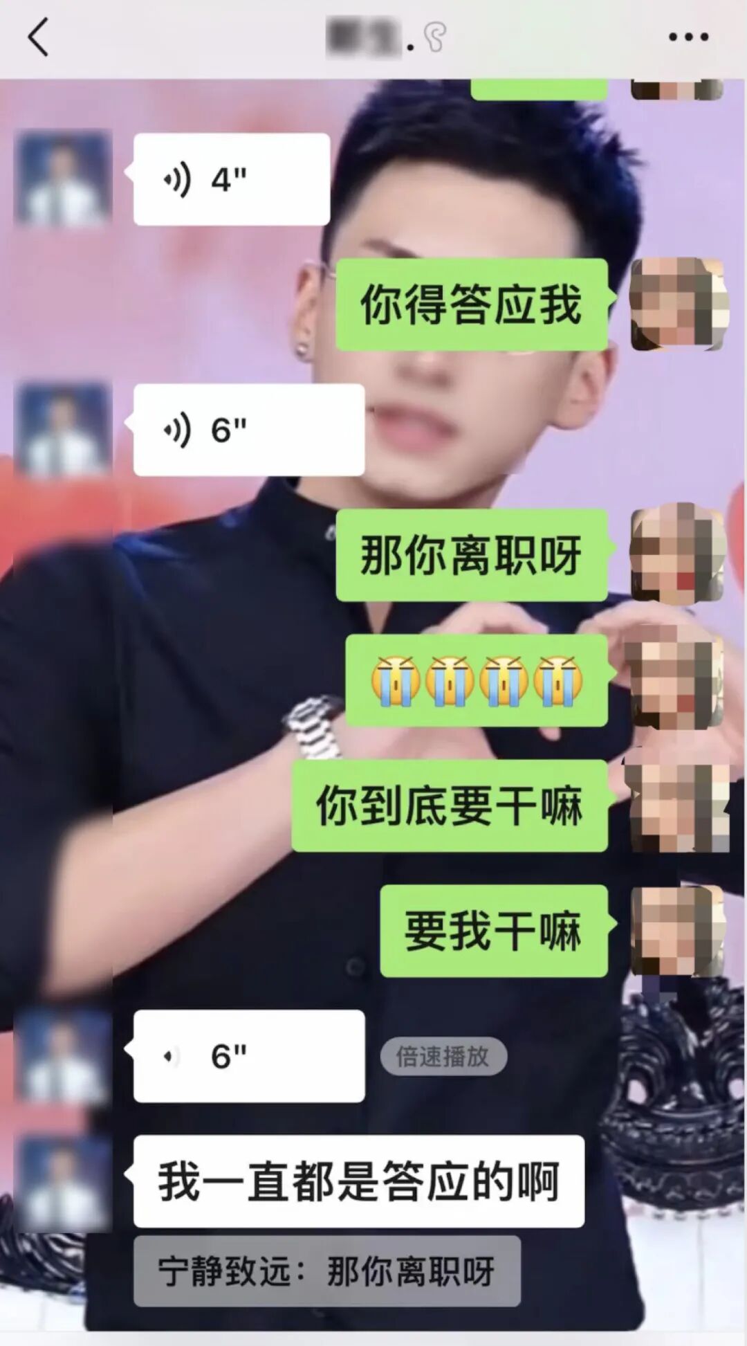 “他要我们几个管理员跟同团的人一起演戏,证明在他心里,宁静姐(袁女士)才是他最爱的人,全公司所有粉丝都知道他们是恋爱关系,我眼睁睁看着宁静姐越陷越深,投入大量钱、时间、精力、感情,直至精神崩溃,我也心有不忍。”小云说。