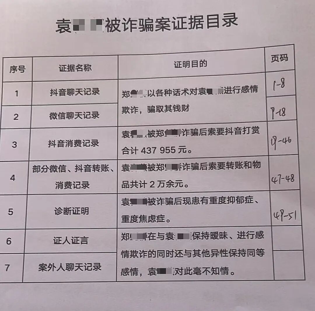 袁女士向警方提供的证据目录(注:郑**就是X风)