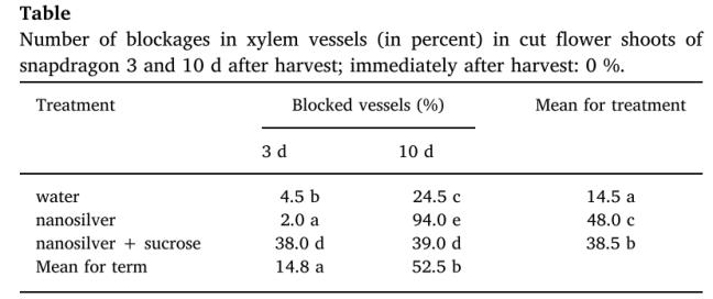 △无论瓶插液成分如何,切花花茎中的导管堵塞数量总是随瓶插天数持续增加