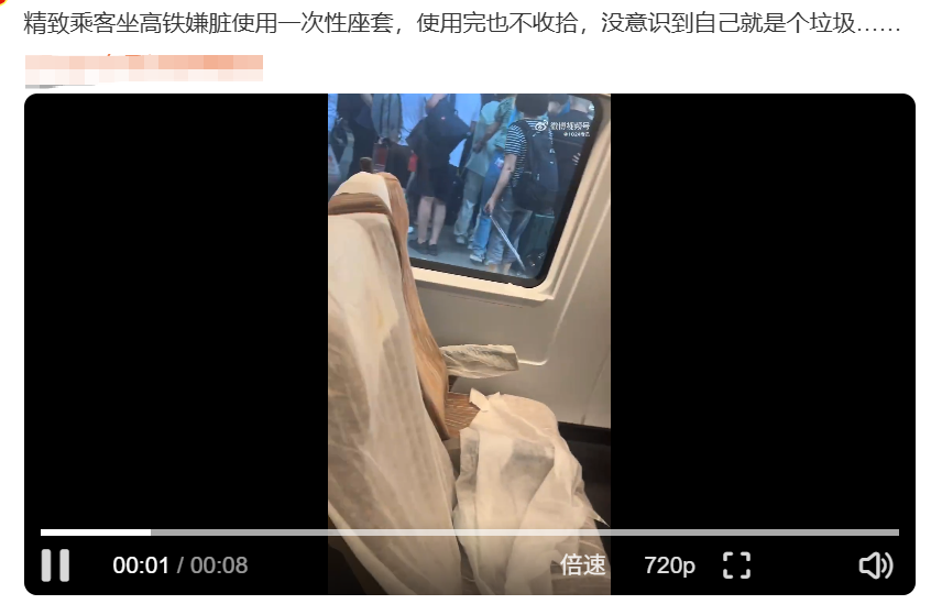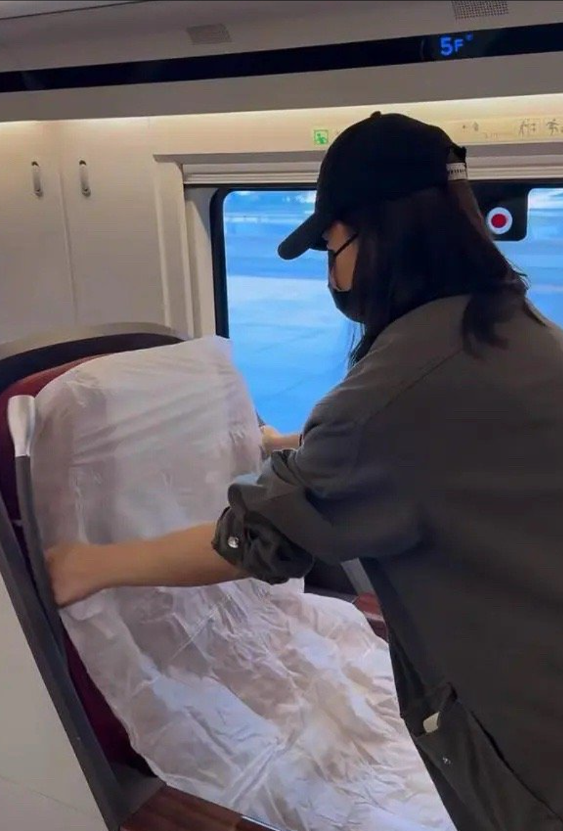 有网友发现,女星杨子姗也曾在视频中晒出,上高铁就套上一次性座椅套。
