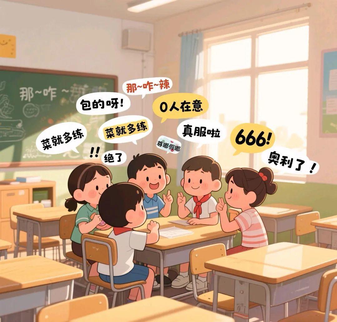 “家长们不必太焦虑,不妨‘让子弹飞一会儿’,关键要意识到,这些话来得快去得也快,多数会‘昙花一现’,随着成长自然更替。”杭州市钱塘区幸福河小学党支部书记、校长周虹认为,这是孩子构建社交圈层的“密码”,类似80后的“帅呆了”、90后的“yyds”,本质是群体归属感的建立,也表明了孩子们学习能力强,是数字原住民的天然沟通方式。