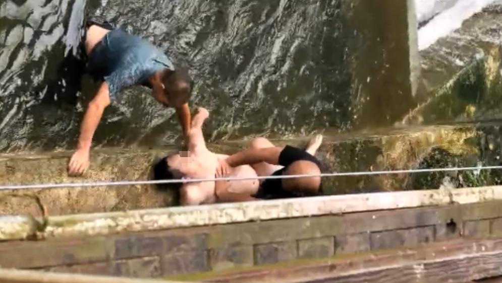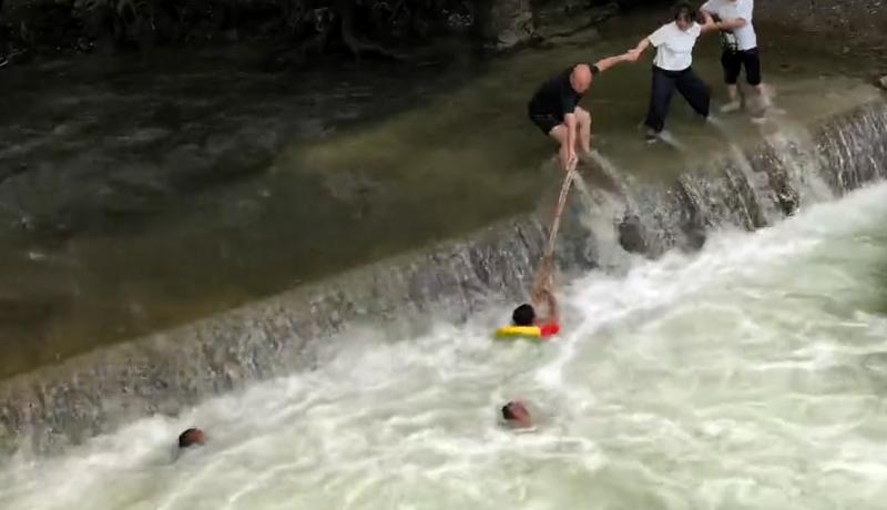 网友在社交平台发布的视频显示,事发时,一名小孩被卷入了漩涡,几名男子参与施救,有人跳入漩涡中施救,有人在岸上拿来了扫把,还有人拿来了救生圈等。最终,落水小孩被救上岸,但一名施救的男子却溺水了。不过,溺水男子也被及时救上岸,并在救援人员进行心肺复苏等急救后脱险。