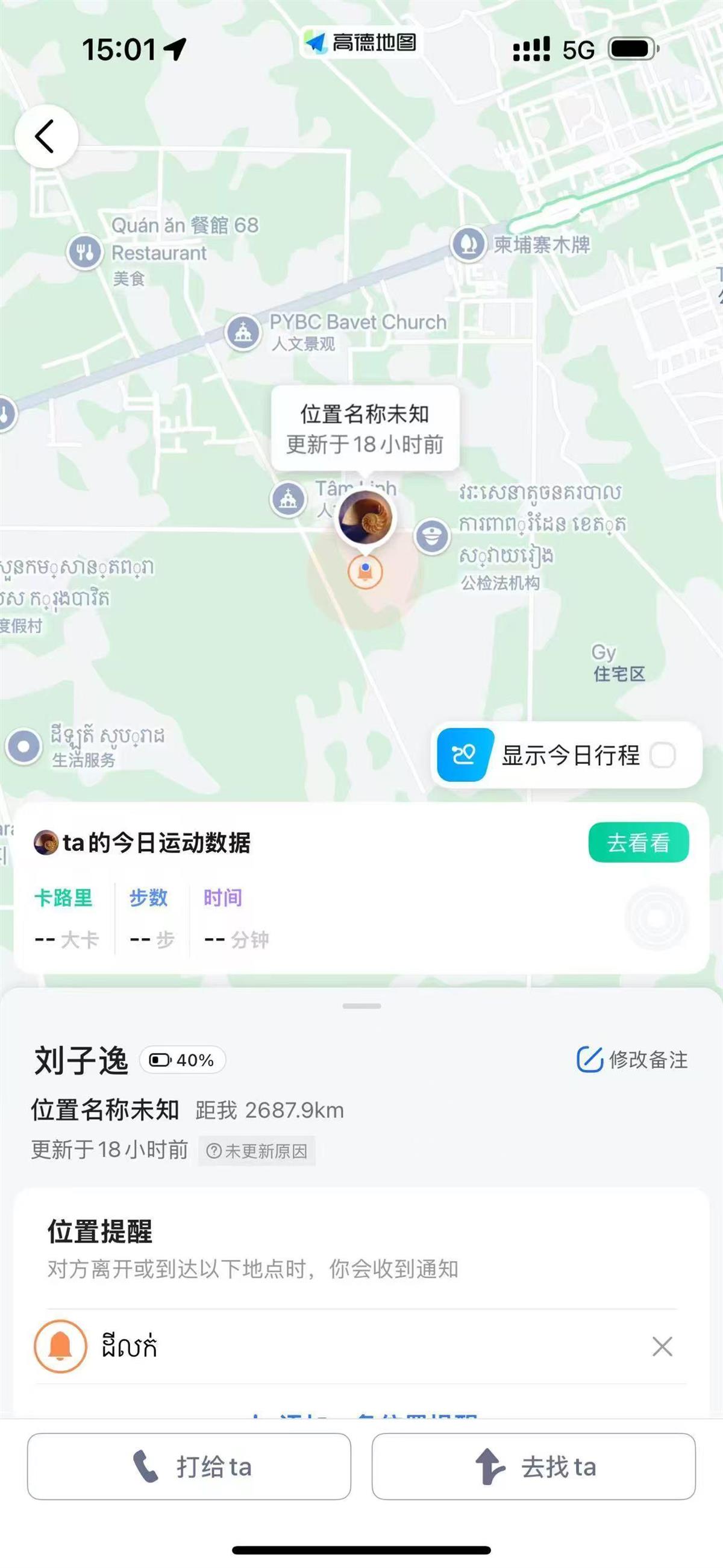 杨牧林最后定位显示在柬埔寨,显示更新于1个月前(受访者供图)