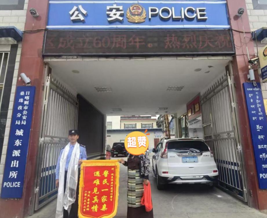 ▲锦旗送到西藏日喀则市公安局桑珠孜分局城东派出所