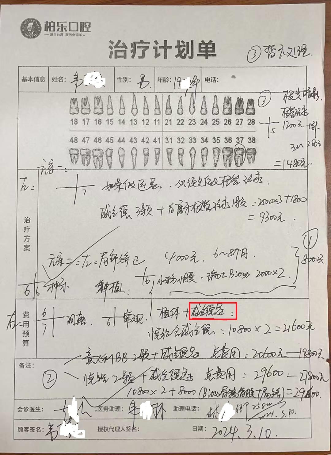 7月18日,韦先生告诉记者,从2024年3月持续到2025年3月,他在南宁柏乐口腔医院(南湖总店)进行种植牙、牙齿矫正等项目,期间多次往返医院配合治疗,总花费25800元。