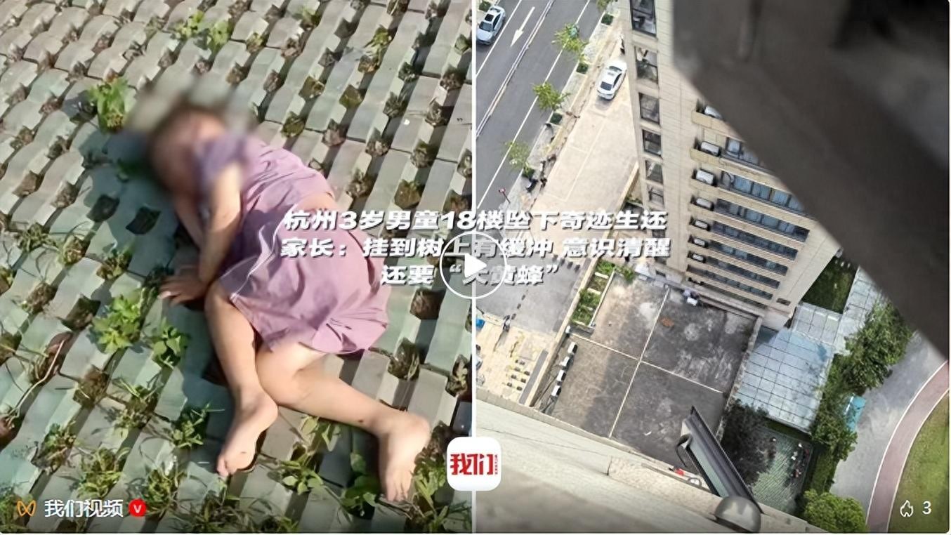 近日,浙江杭州一3岁男童从18楼坠至楼下绿地,奇迹生还。