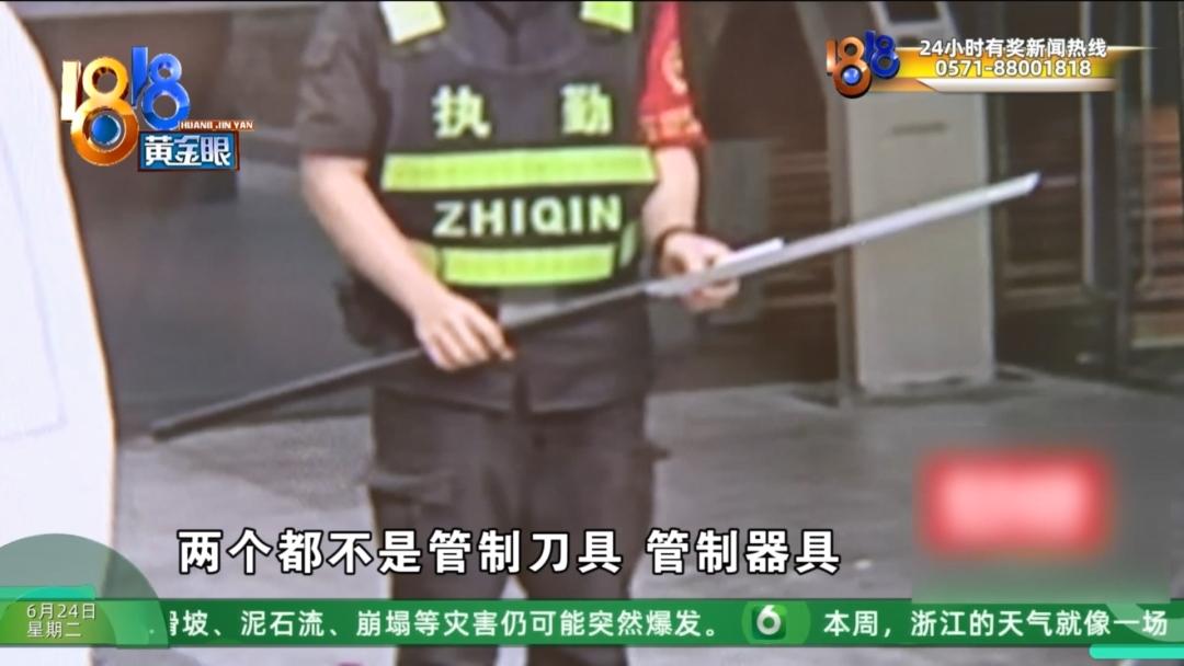 杭州市公安局拱墅区分局石桥派出所 傅副所长:其中一个是一根甩棍,也没有警用标识,不认定是管制器具。第二个它是相当于网上购买了一把工艺品性质的一把器具,也是没有锋刃的,所以说也不是管制器具。
