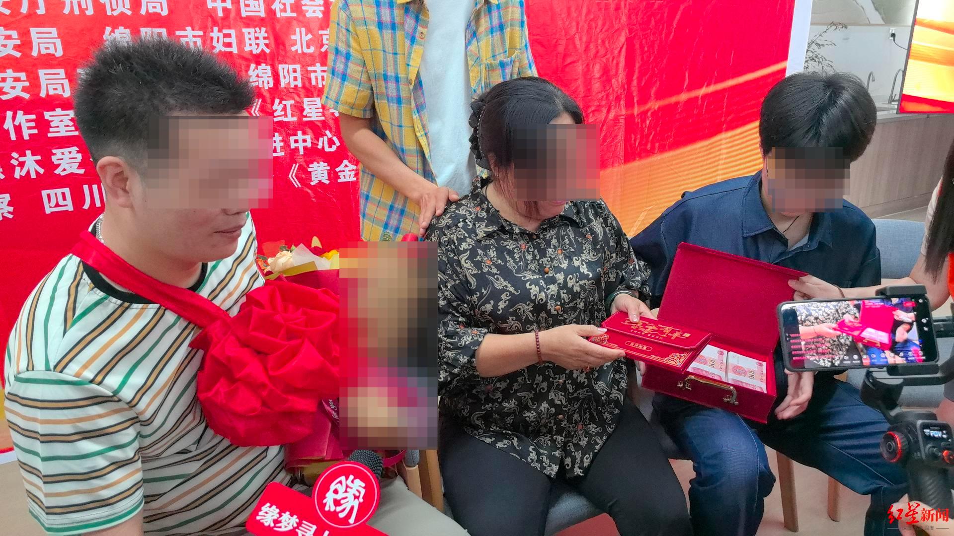 认亲现场,张英送给儿子6万元现金