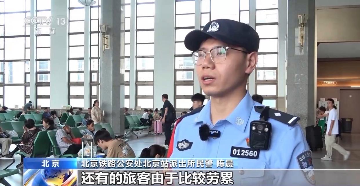 北京铁路公安处北京站派出所民警陈晨:在广场上睡觉的旅客,无法对自己携带的行李物品进行有效的看管,还有的旅客由于比较劳累,躺在地上玩手机的时候,把手机往身边一甩就睡着了,而且由于处于熟睡状态,根本无法感知身边的异常行为,容易给盗窃分子可乘之机。