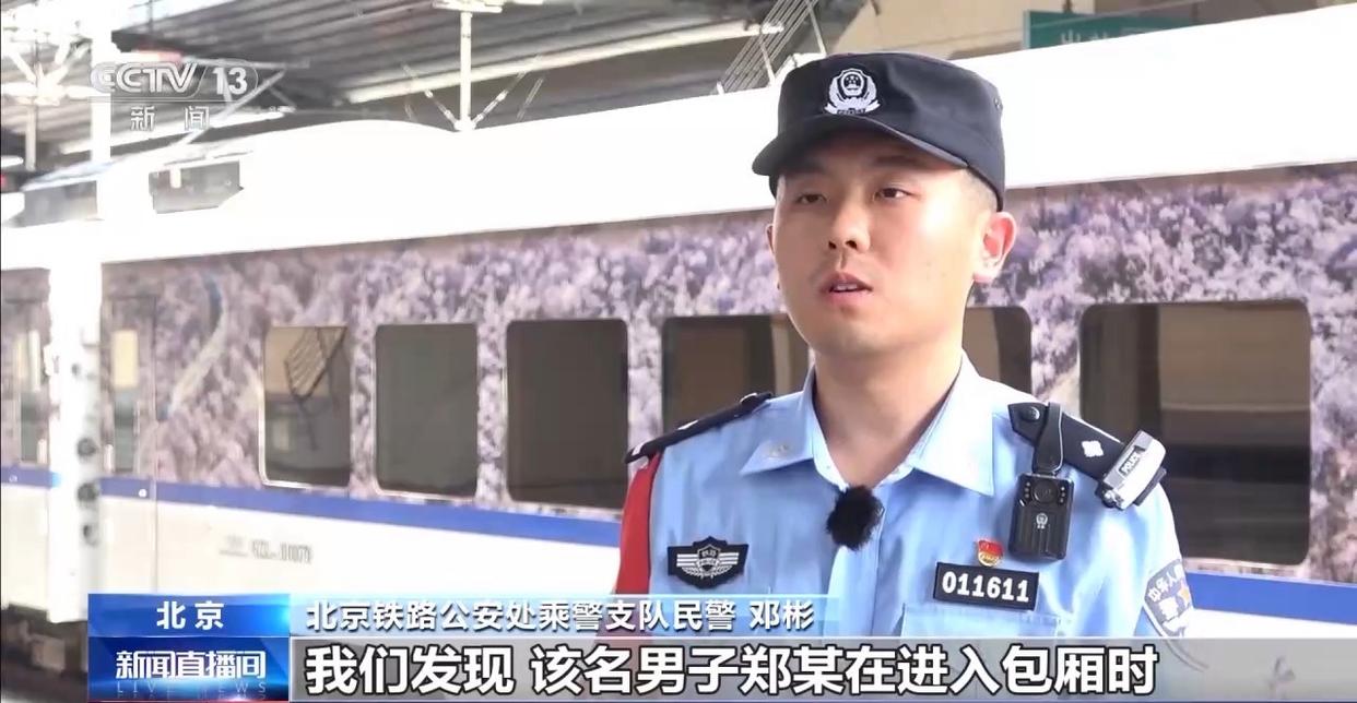 北京铁路公安处乘警支队民警邓彬:我们发现,该名男子郑某在进入包厢时口袋里没有手机。离开包厢时,右侧裤兜内有一部手机,因此我们怀疑张先生的手机就是被郑某拿走的。