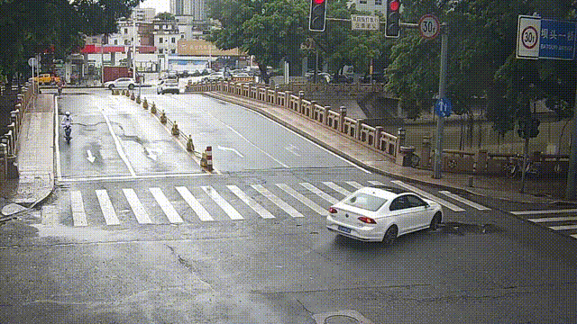 司机醉酒驾驶小车上路,结果酒气发作,连人带车冲入河中。